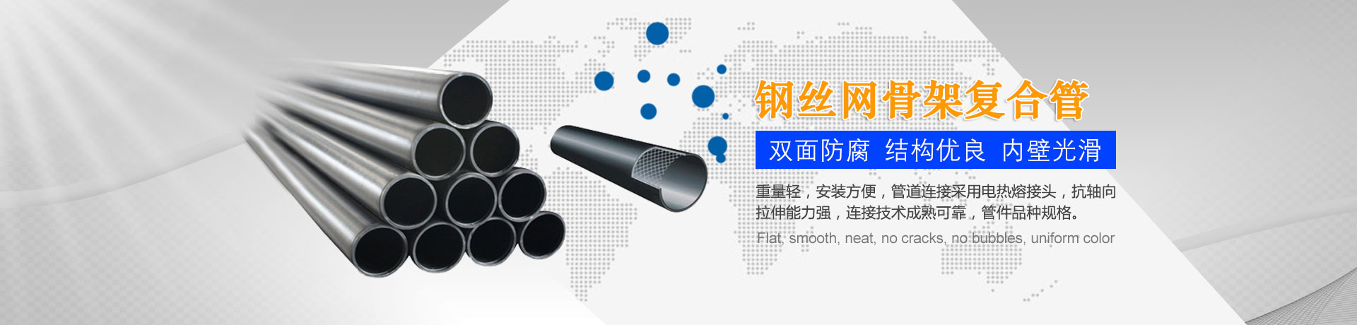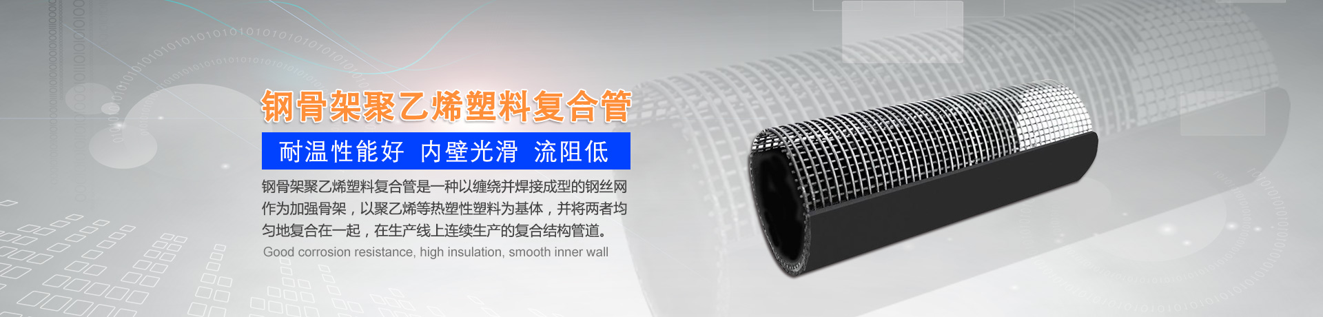 我們主要生產(chǎn)銷售:鋼絲網(wǎng)骨架復合管、鋼絲網(wǎng)骨架聚乙烯復合管、孔網(wǎng)鋼帶聚乙烯復合管、鋼骨架聚乙烯塑料復合管、電熔管件、HDPE中空壁纏繞管、HDPE內(nèi)肋增強螺旋波紋管、HDPE結(jié)構(gòu)壁增強B型管等一系列產(chǎn)品。復合管以其特有的防腐蝕、耐磨、耐高溫、抗嚴寒、耐壓、抗蠕變、穩(wěn)定性好、安裝方便等特點,逐步取代各類金屬管件和塑料管件,被應(yīng)用于消防、石油、化工、供水、采礦、海水輸送等領(lǐng)域...